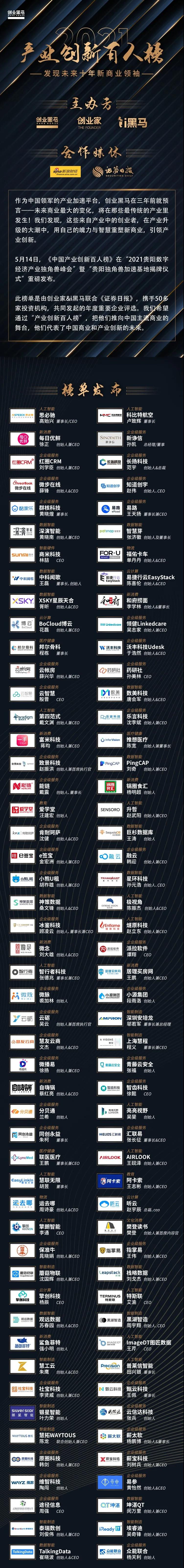 以下是《中國產(chǎn)業(yè)創(chuàng)新百人榜》榜單: