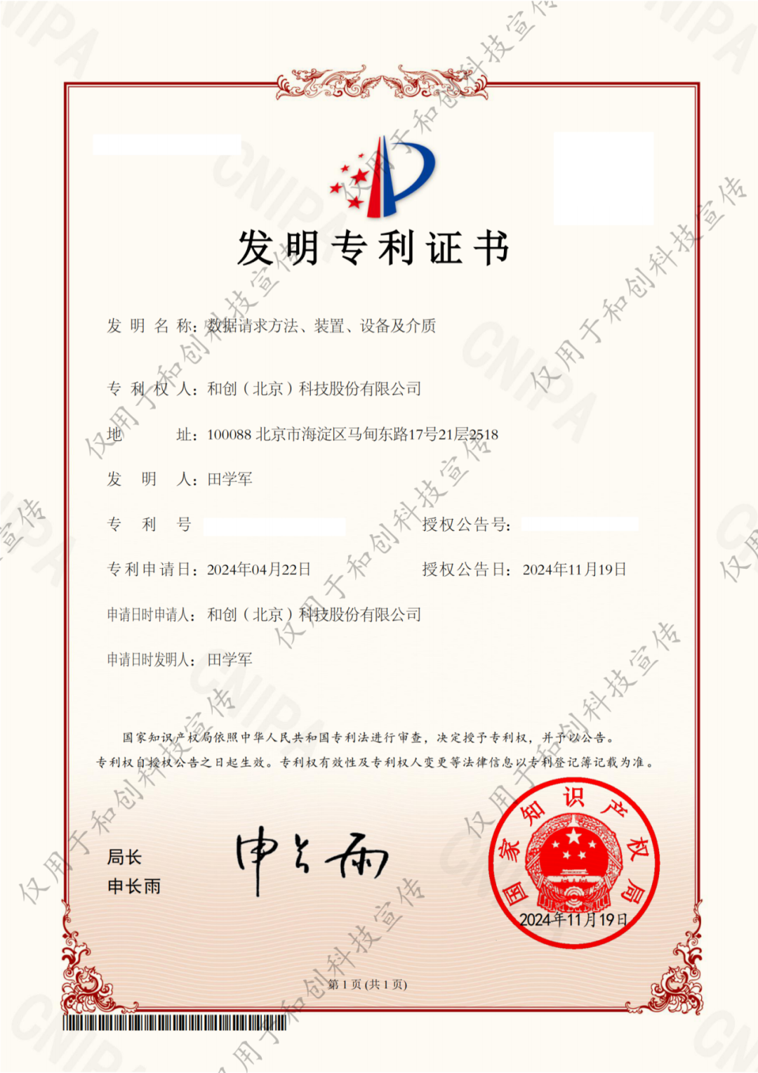 和創科技在技術創新領域持續邁進,近日又成功榮獲了一項最新的專利——“數據請求方法、裝置、設備及介質”。這一專利的獲得,為和創科技在數據傳輸和處理領域提供了更加有力的技術支持。