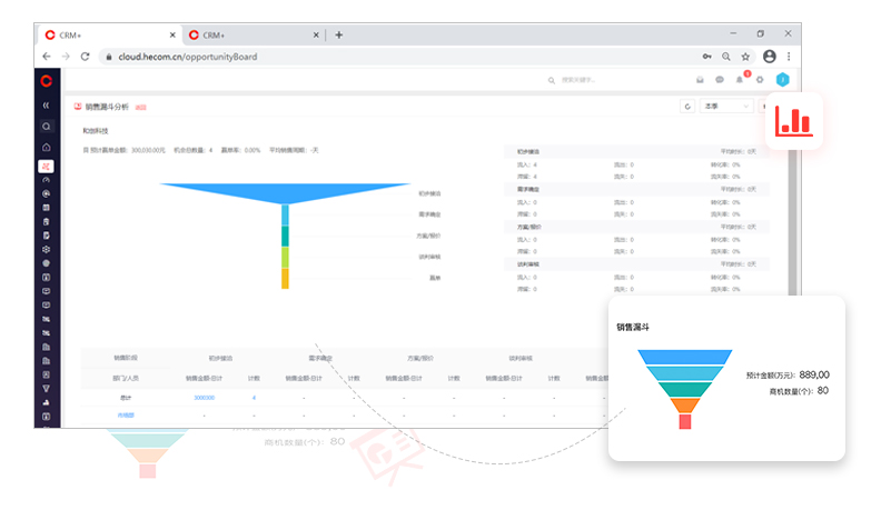 銷售預測更準確:通過銷售漏斗實時監(jiān)控銷售進展,準確預測銷售產(chǎn)出