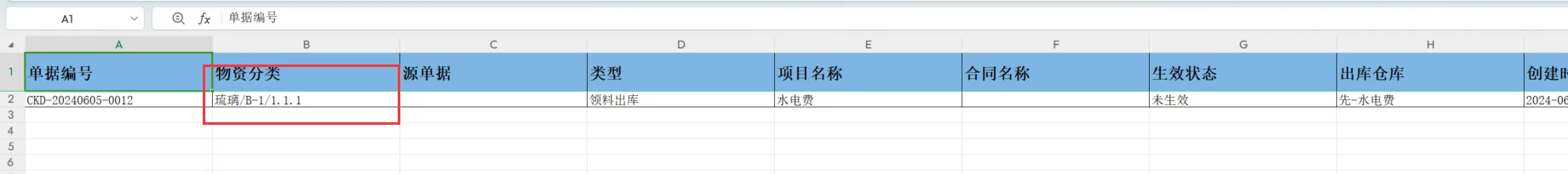 查找關系字段查找樹形對象或樹形子對象時,如果勾選了顯示完整目錄,導出時也會導出樹形對象的完整路徑,不同層級間用“分隔”,如出庫單查找了物資分類,導出時會將物資分類的父級也同時導出