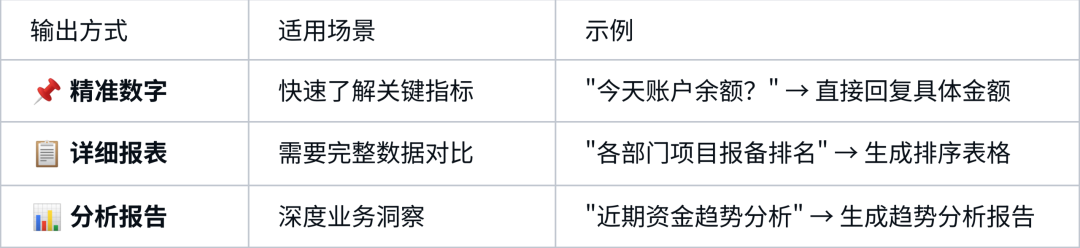 系統(tǒng)智能識別查詢需求,支持多種輸出方式,滿足不同場景需求: