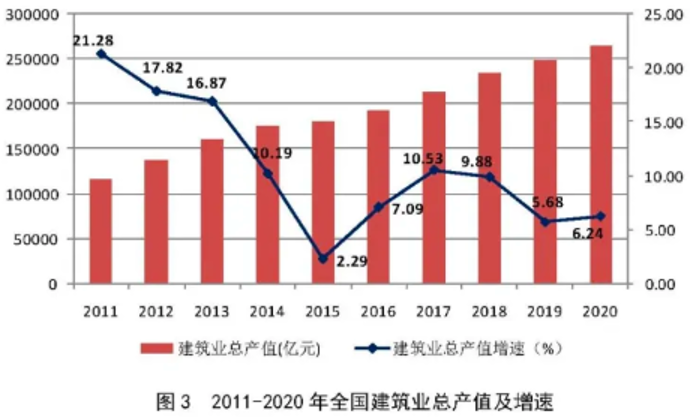 過去的10年、20年,整個建筑行業(yè)經(jīng)歷了一個波瀾壯闊的發(fā)展。2000年全國建筑業(yè)產(chǎn)值1萬億,2020年就達(dá)到26.4萬億。