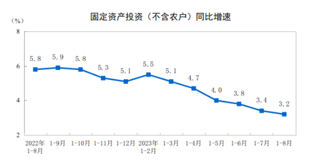 9月15日,國家統計局發布數據顯示,1—8月份,全國固定資產投資(不含農戶)327042億元,同比增長3.2%,其中,制造業投資增長5.9%,增速比1—7月份加快0.2個百分點。從環比看,8月份固定資產投資(不含農戶)增長0.26%。1—8月份,民間固定資產投資169479億元,同比下降0.7%。