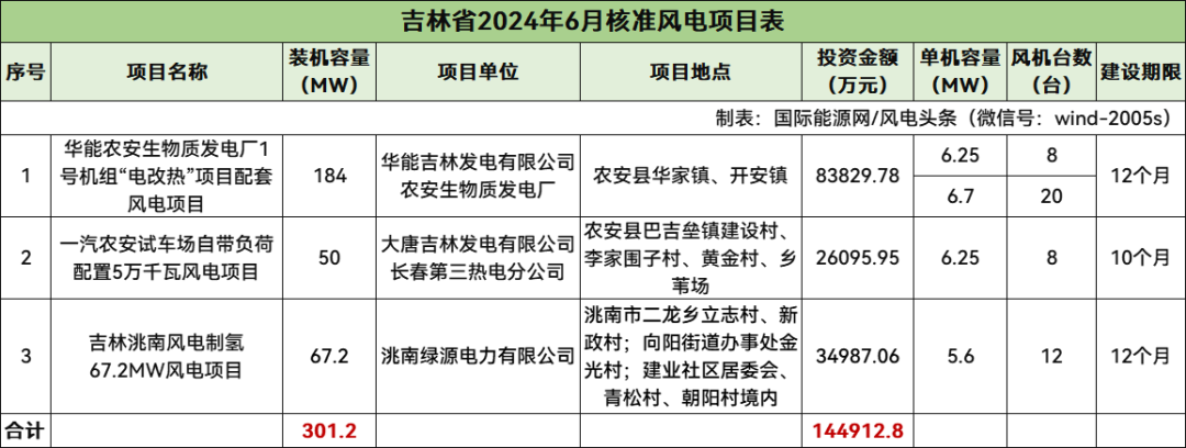 吉林核準3個風電項目,總規模301.2MW,總投資144912.8萬元,均為陸上風電項目。