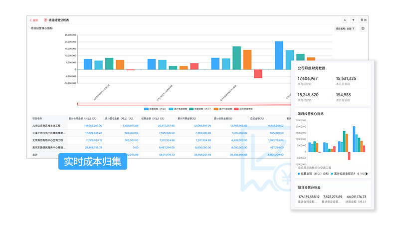 2、管理層無法實時掌握項目收支情況,各類數據不能及時記錄并匯總。項目實施過程中的人機材成本超標、進度拖延、質量不過關等問題管理層也無法及時得知,更不能做出相應的糾偏決策,最終導致成本超標。