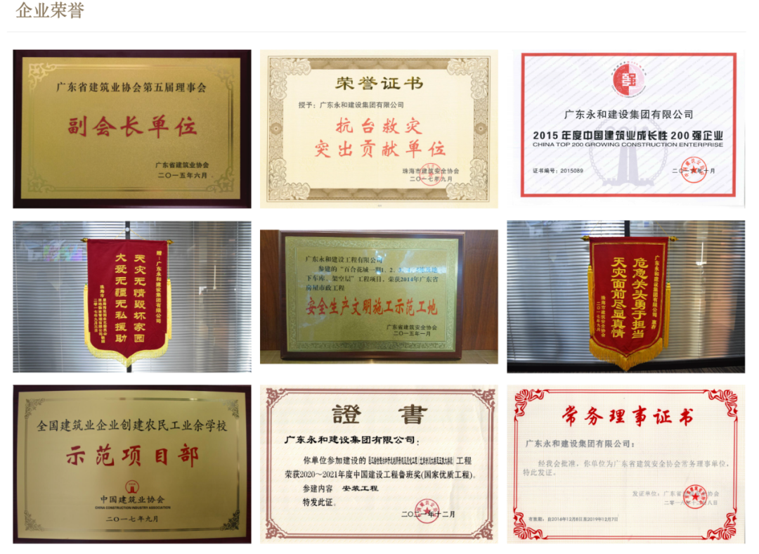 廣東永和建設集團有限公司成立于2007年3月,注冊資金6億元,擁有3個一級資質:建筑工程施工總承包一級、市政公用工程施工總承包一級、建筑裝修裝飾工程一級,以及建筑機電安裝工程等17項專業承包資質,現已發展為集工程設計、施工、建筑材料供應鏈、建筑勞務輸出一體化多元化發展的廣東省百強民營企業。 集團管理機構健全,實行區域化經營管理,隨著集團業務的不斷拓展,項目遍及廣東、廣西、海南、江西等省份。